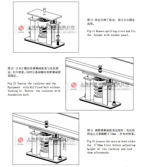 簧減振器 廠家都會在彈簧減振器產(chǎn)品包裝中放置說明書,和其他工業(yè)產(chǎn)品一樣,產(chǎn)品說明書內(nèi)都會配有產(chǎn)品的安裝圖。以下就以彈簧減振器知名廠家——上海松夏減振器為例,為你展示ZTF彈簧減振器 安裝圖樣,詳情如下圖: